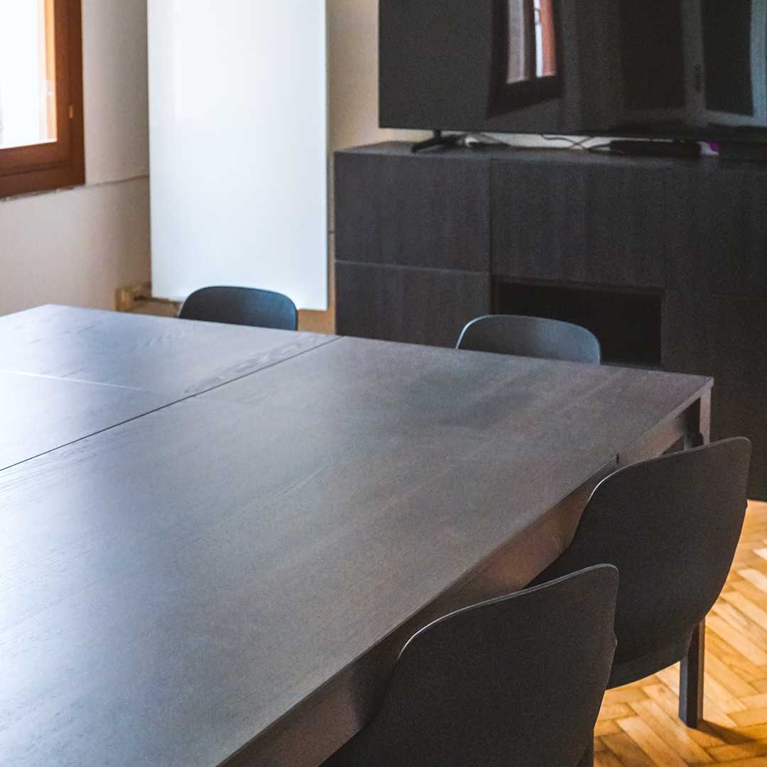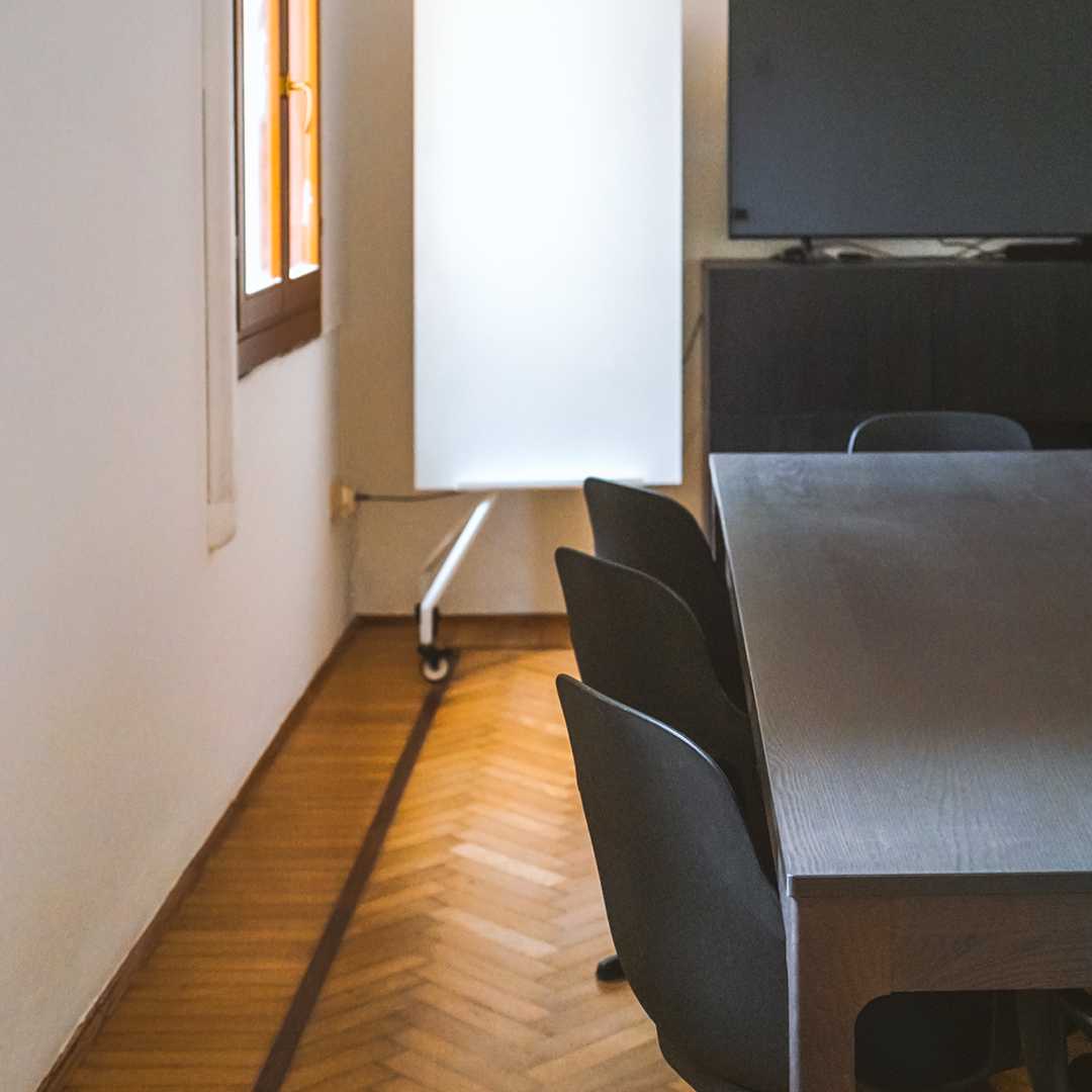 Una grande sala riunioni, fino a 10 persone, ideale per presentazioni (Monitor da 75") e riunioni.